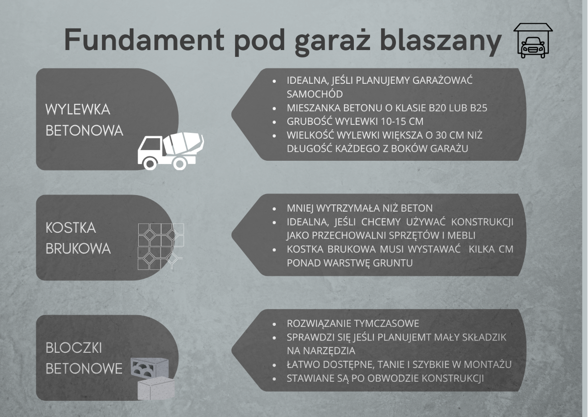 Trzy popularne rodzaje podłoża pod garaż blaszany: